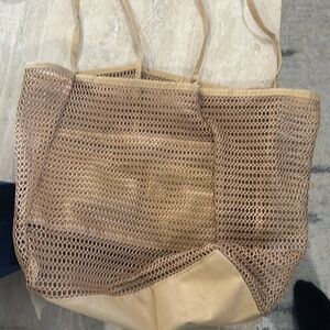 Taupe Mesh Beach Tote Womens Lightweight Shopping Shoulder Handbag