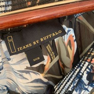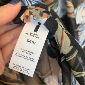 I Jeans By Buffalo Sheer Small Floral Black Casual Business Blouse