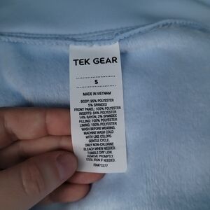 Stay stylish and comfortable with this Tek Gear Women's Deco Mixed Media Jacket in a gorgeous blue shade. Brand new with tags, this size small jacket features a sleek and modern design, perfect for layering during workouts or casual outings.