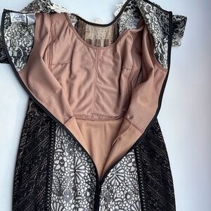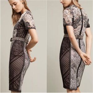 Anthro Beguile Byron Lars Black White Lace Sequins Midi Cocktail Dress size 10