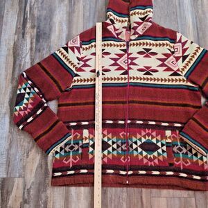 Wool Hooded Jackets for Women and Men - Chocolate Colorful Beige Unisex XL Aztec
