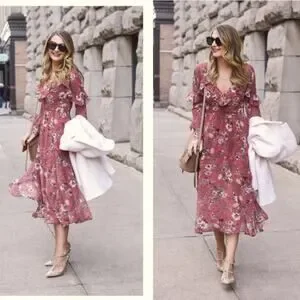 WAYF - Pink Floral Long Sleeve Midi Dress
