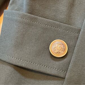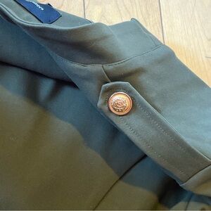 Karen Millen Military Green Zip Front Ponte Jersey Blazer. “From workdays to weekend drinks, this tailored ponte jersey jacket never fails to look chic. It shows off a sporty gold-tone trims, notched detailing and a neat, form-fitting shape perfect for layering over high-rise pants.