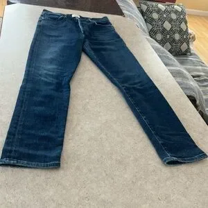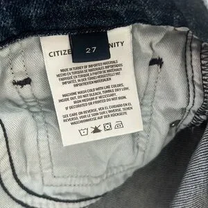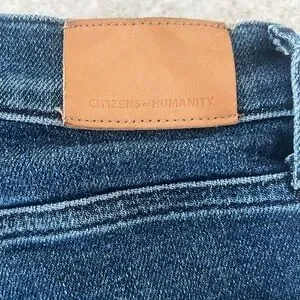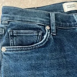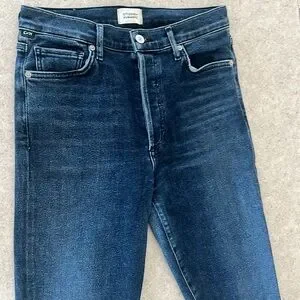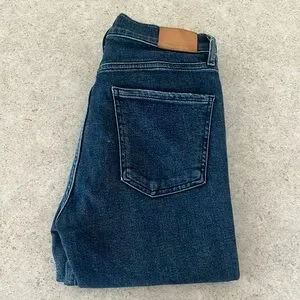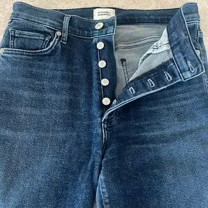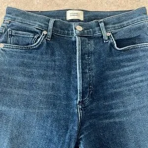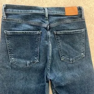Button fly high rise. In excellent condition size 27. Dark wash with subtle light distressing.