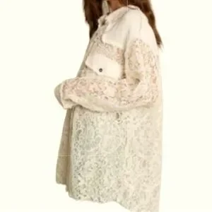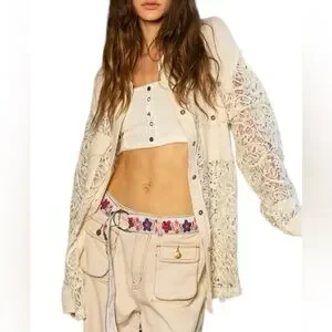 NEW POL Natural Lace Gauze Shacket. Size Small. 100% Polyester