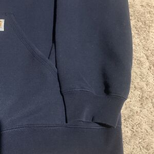 From jobsite to weekend projects, this men's sweatshirt offers easy wearing warmth. Carhartt® durability and familiar hoodie comfort mean you can swing a hammer or relax with equal ease. A midweight cotton blend offers everyday versatility. 50% cotton, 50% polyester blend fabric content Carhartt strong triple-stitched main seams Three-piece hood with drawcord Rib-knit cuffs and waist help keep weather out Front hand warmer pocket Carhartt patch sewn-on pocket In good used condition.