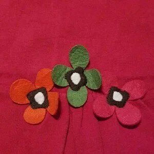 Gymboree dress size 6 raspberry pink, jersey knit fabric with 3 felt flowers, has a dot on the tag