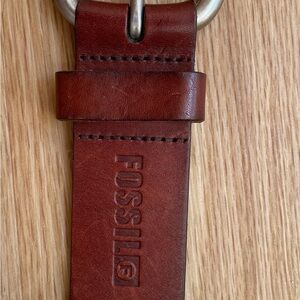 Fossil men’s brown leather belt size 34 unisex silver buckle