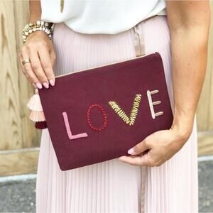 Stella and Dot Maroon Love Zipper Clutch Purse Boho Valentine's Day Bride