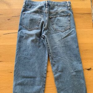 Designer description: Frame Denim creates the perfect blend of quality denim and athleisure aesthetic with these The Lounge jeans. Executed in a relaxed silhouette with an elastic cuffed ankle, this pair is the key to dressing comfortably without compromising style, it is a refreshing update to your everyday edits.
