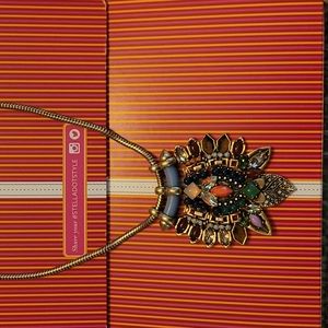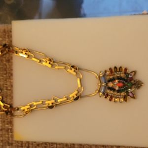 2 Goltone Necklaces that can be worn separately or as one. Goltone pendant included has over 20 stones in a variety of colors. Would match everything in your closet. Never worn, stored in box.