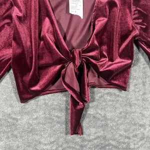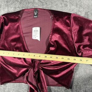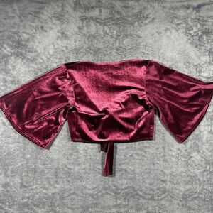 Windsor Burgundy Velvet Bolero Sz S Red Bell Sleeves Tie 90s Y2K Vamp Holiday