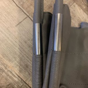 NWOT Neiman Marcus Pebbled Gray Faux Leather Tote