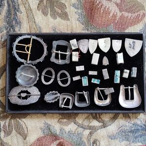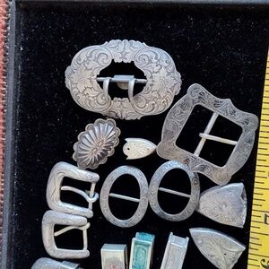 A collection of ranger belt buckles and parts. I think they are almost all sterling. Other beautiful engraved sterling buckles. I be have owned these more than 60 yrs. great parts!
