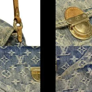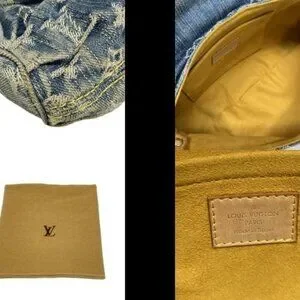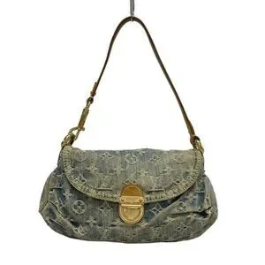 Authentic Louis Vuitton Denim Mini Pleaty Vintage Pouch Pochette Bag Monogram LV