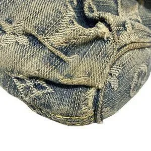 This is an authentic Louis Vuitton Mini Pleaty in Blue Denim. This unique bag is made of aged distressed discolored denim, which means that no two of these bags will be the same. It has a single press-clip closure. The sides are pleated as the name suggests to give this extra capacity and a lovely style. The interior is made of beige saffron microfiber lining and has an open pocket with an LV patch of leather on it.