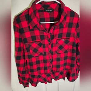Charlie Paige Red Flannel Womens Long Sleeve Button Up Top Large