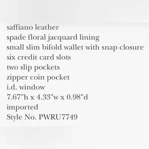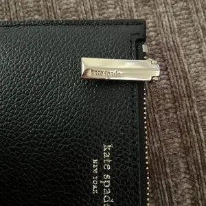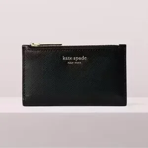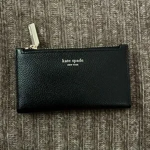 Kate spade bi-fold Spencer Slim in black with gold tone hardware.