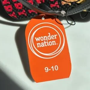 children’s flip flops with elastic band to keep them secure children size 9-10 Wonder Nation uses eco friendly recycled materials to make these slippers. Summer is approaching and these will not last long