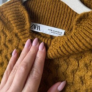 Zara Mustard Brown High Neck Sweater Vest with Intricate Knit Patterns, M