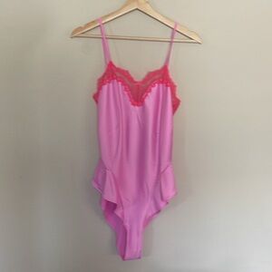 SKIMS STRETCH SATIN LACE TEDDY SM