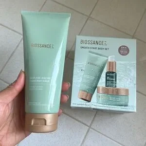 Biossance FULL SIZE AND travel size body scrub set