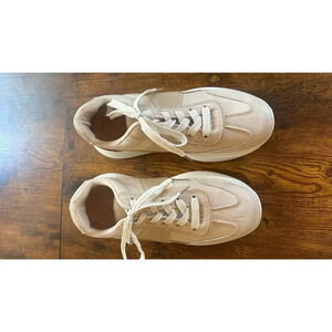 Hashtags: #MaddenGirl #PlatformSneakers #ChunkySneakers #BeigeSneakers #LaceUpSneakers #RoundToe #WomensSneakers #CasualFootwear #Size10 #SneakerStyle #ChunkyShoeTrend #StreetStyle #TrendySneakers