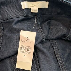 NWT navy blue pants from LOFT. Wide leg in a twill material and seams down the front of each leg. 5 pocket and single button and zipper closure.