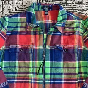Vintage Chaps Zip Up Flannel Shirt Womens Large Colorful Plaid Top