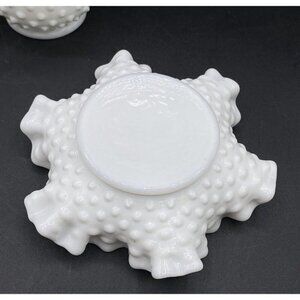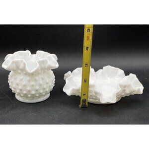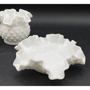 Fenton Milk Glass Hobnail Candy Bon Bon Dish Ruffled Bowl Vase Set Of 2