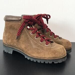 Vintage Vasque Red Lace Up Hiking Boots Suede Leather Mountaineering USA Shoes 6