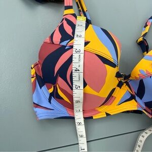 Sunseekers yellow, blue & pink abstract leaf print 2 piece bikini set