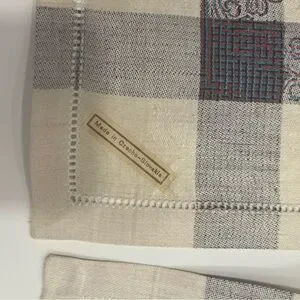 Elevate your dining experience with these exquisite table linens, featuring a sophisticated blue and white color scheme. Crafted from pure linen, they offer elegance and durability, making them perfect for any dining occasion. The geometric pattern adds a modern touch to your table setting.