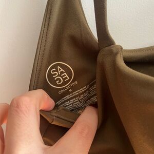 Olive sage collection set, in size medium. The leggings are on the shorter end. I’m 5’3 and they come to my ankles. The bra has an extra padding