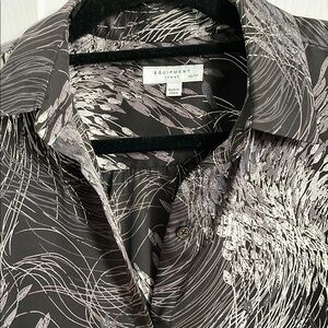 Stylish button down shirt by Equipment. Features abstract black and gray pattern. Long sleeves with button cuffs. Perfect for any occasion. New!