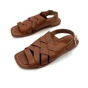 Loeffler Randal Grayson Leather Peep Toe Slingback Sandals Tan Fisherman Preppy