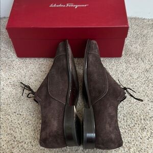 Salvatore Ferragamo brown suede lace up shoes. Size 11 EEE, which is a wider fit for the brand. These shoes have been worn only twice. Come with original box. The box has a tear on one corner which has been taped. Please ask any questions before purchasing.
