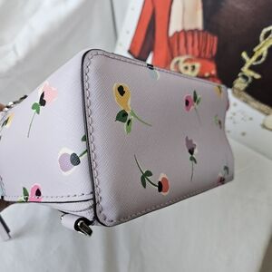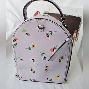 NWOT Kate Spade Lilac purse/backpack, 3 way. You can wear this as a backpack, a purse, or just carry it by the top handle. There are 5 different D rings for modifying this back to wear this back different ways. So versatile. The bag is a lilac color with pink/yellow/bably blue flowers, perfect for Spring time, Easter gift, and for summer. Bag has an outside pocket, side zippered privacy pocket, and a spacious light interior canvas lining with Kate's famous spades. Interior also has a side pocket. Hardware are all silver toned.