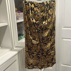 BA&SH Jupe Carry Midi Skirt, Slit, Ruched, Snakeskin, Size 2 (8/M)