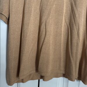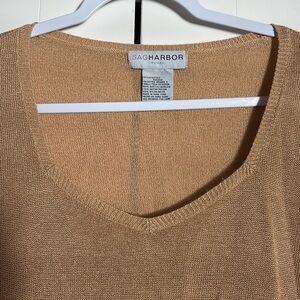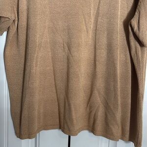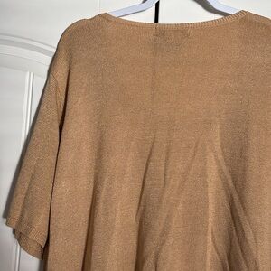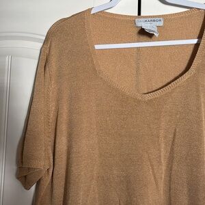 Pretty tan-gold short sleeve knit blouse with pretty scoop neck. Made by Sag Harbor in size 3X. Looks great dressing up or casual. Shirt is in very good condition