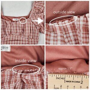 Vestique Pretty in Plaid Cropped Top with Puff Sleeves Size M Rose Pink
