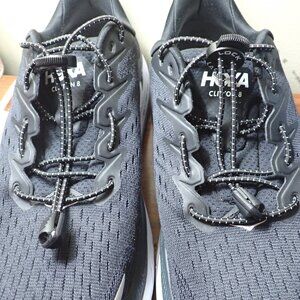 Hoka Clifton 8 Black White Shoes Women's Size 10 D Wide. No inserts. I added on bungee cord. Preowned.