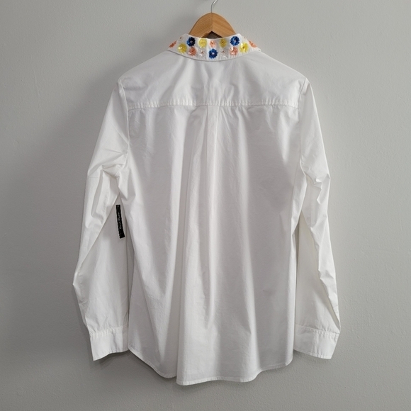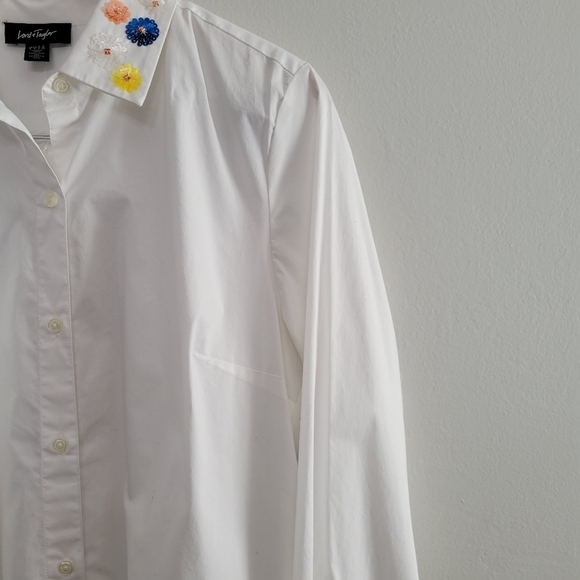 lord and Taylor white button down with over sequins detail around collar. New with tags and in excellent condition.