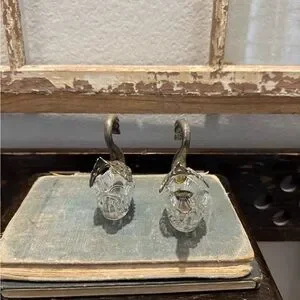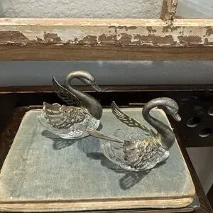 Beautiful pair of silver swan figurines. Perfect for home decor. Intricate detailing on wings.