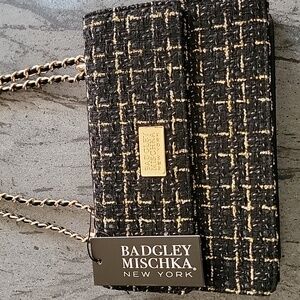 BADGLEY MISCHKA NY Tweed Shoulder Bag w/Gold Tone Chain Strap Black NWT
