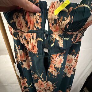 Lulus Enchanting Garden Strapless Maxi Dress - Emerald Floral - Size XL - NWT