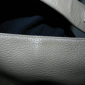 Color is a taupe tone. Condition is preowned/good with normal signs of wear on corners and exterior. Creasing on the shoulder handle. A couple of marks on the exterior. Interior needs a cleaning. See pictures for additional description.