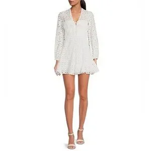 Gianni BiniKatrina Eyelet V-Neck Long Sleeve A-Line Dress