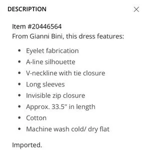 Gianni Bini NWT Katrina Eyelet V-Neck Long Sleeve A-Line Dress S