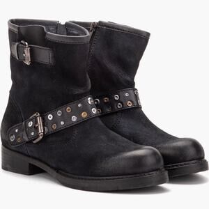 NIB Vintage Foundry Miriam 8 38.5 Black Suede Leather Moto Boots Booties